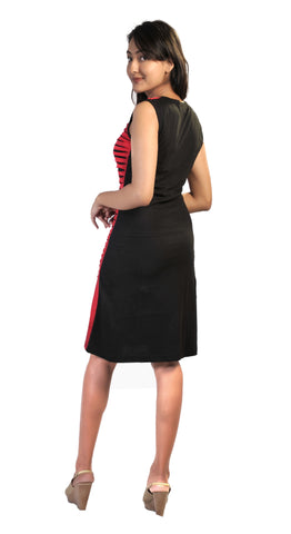 Ladies sleeveless black & red dress with colorful flower embroidery and razor cut design. Pair up with the flats, heels or boots. Perfect for the beach day or as an evening wear. Enhance the style just simply by adding different accessories with this dress. Style it as you prefer!!!