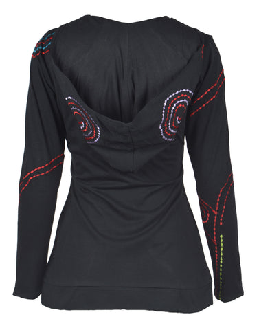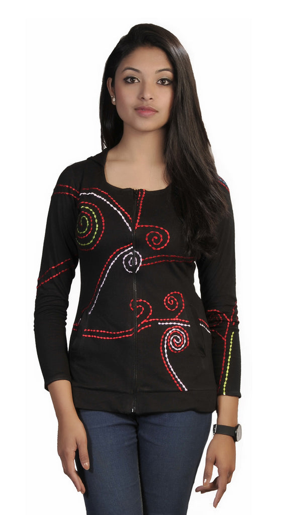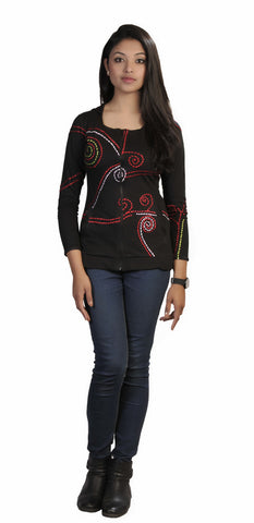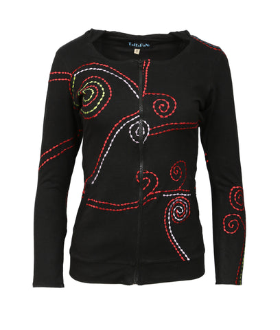 Ladies Black Slim Fit Long Sleeve Sinker Jacket with Dotted Spiral Embroidery