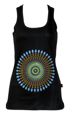 Ladies colorful, Summer Sleeveless Tops/ T-Shirt with Colorful Ring Pattern Print. Pair up with the jeans, skirt or Leggings. Perfect for the beach day or for casual day out. Enhance the style just simply by adding different accessories with this Tops. Style it as you prefer!!!