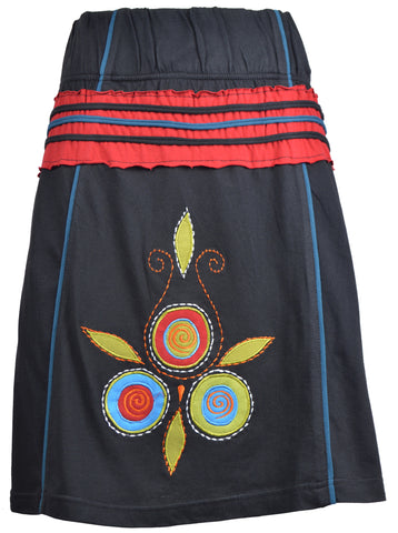 Ladies Cotton Mini skirt with an elasticated waist and Colorful Flower Embroidery. Comfortable and Easy to Wear and Unique Design.