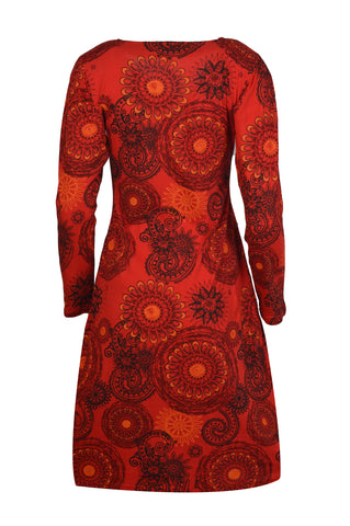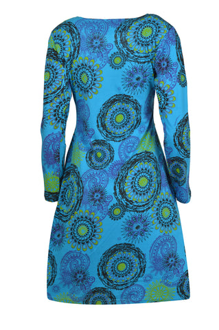 Tattopani women's long sleeve dress all over floral print design. 100% cotton for comfortable and soft feeling. Uniquely hand sewn embroidery.